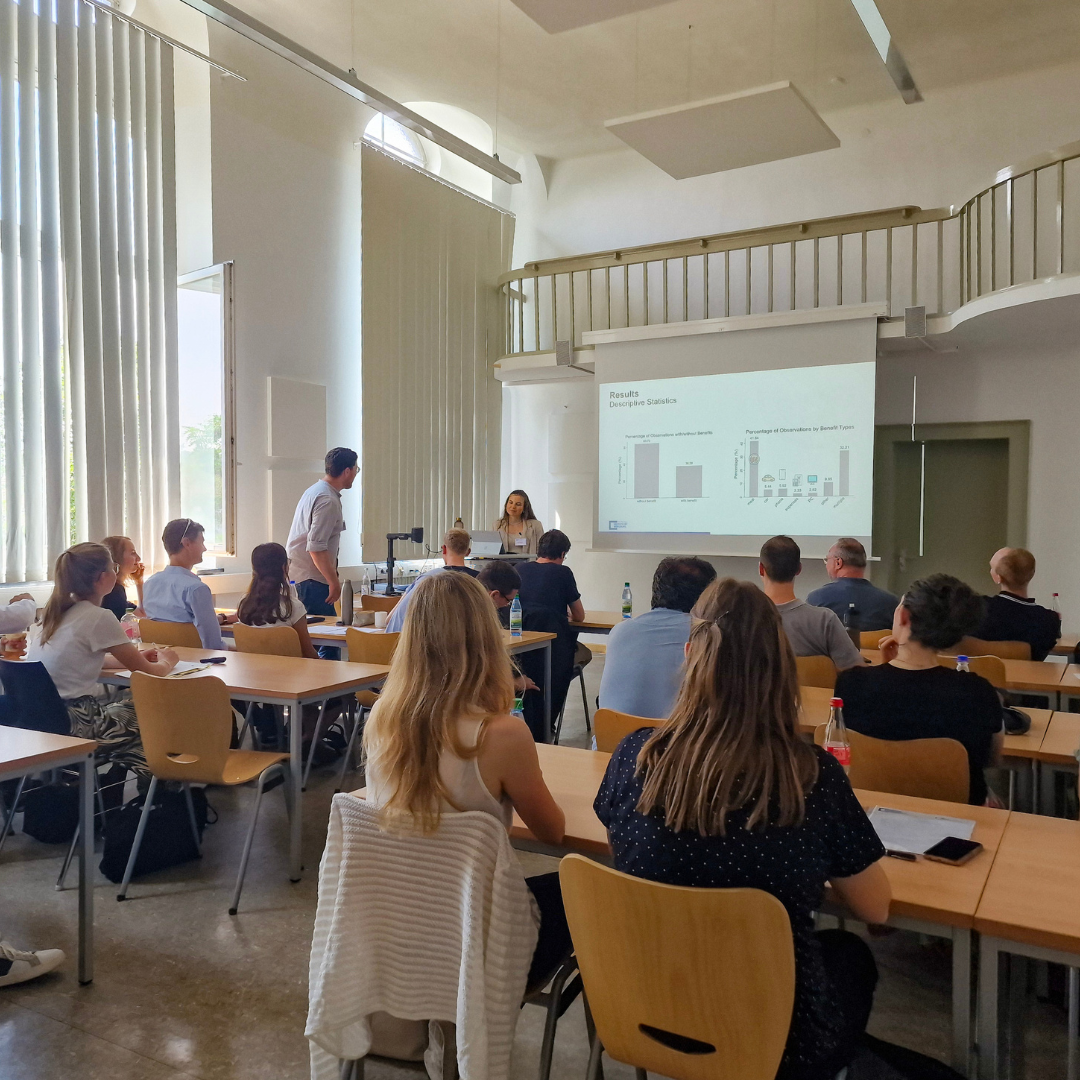 Am Freitag, den 28. Juni fand der 24. Bavarian Micro Day an der Wirtschaftswissenschaftlichen Fakultät der Julius-Maximilians-Universität (JMU) Würzburg statt. Rund 35 Wissenschaftlerinnen und Wissenschaftler nahmen an der Veranstaltung teil und nutzten die Gelegenheit, um sich universitätsübergreifend über mikroökonomische Themen auszutauschen.