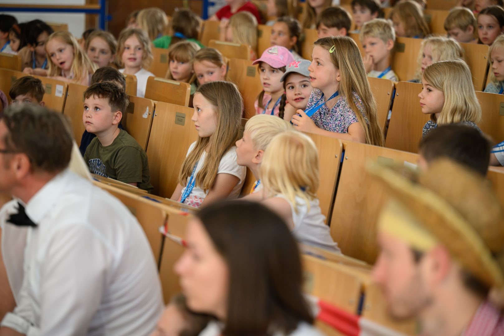Das Feedback der Kinder war überwältigend positiv. Die lebendige Darstellung des Themas durch das Theaterstück und die verständliche Erklärung von Prof. Bofinger machten die komplexen Zusammenhänge des Geldes nachvollziehbar und spannend. Besonders die aktive Teilnahme der Kinder an Fragen und Diskussionen zeigte, wie gut die Vorlesung bei ihnen ankam.