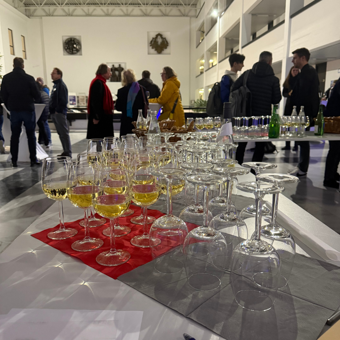 Den Abschluss der Veranstaltung bildete ein Weinempfang, bei dem die Gäste die Gelegenheit hatten, den Abend in entspannter Atmosphäre ausklingen zu lassen. Der informelle Austausch ermöglichte es den Teilnehmenden, die vorgestellten Ideen zu vertiefen und wertvolle Kontakte innerhalb der regionalen Wirtschaft zu knüpfen.