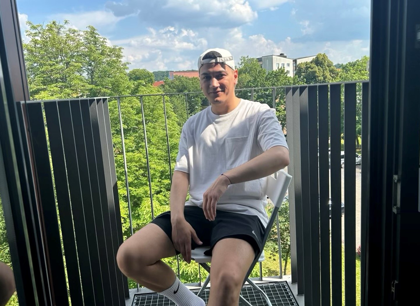Einen Schreibtisch gibt es auch und die zwei großen Fenster erhellen Raum mit viel Tageslicht. Besonders gefalle ihm sein Balkon, auch wenn er klein sei, sagt Koçyiğit. Da er in der obersten Etage wohnt, hat man hier einen besonders schönen Blick zum grünen Innenhof. Dort werden im Sommer fast täglich verschiedene Ballspiele gespielt oder auch hin und wieder Grillabende veranstaltet. Zum Schluss zeigt Koçyiğit noch das moderne Bad mit eigener Dusche. „So lässt es sich leben“, sagt der Student selbstbewusst.