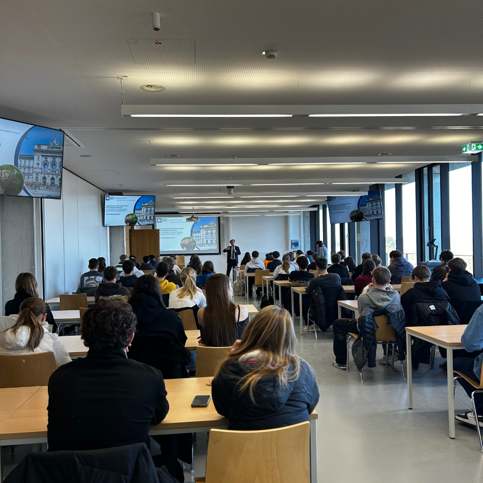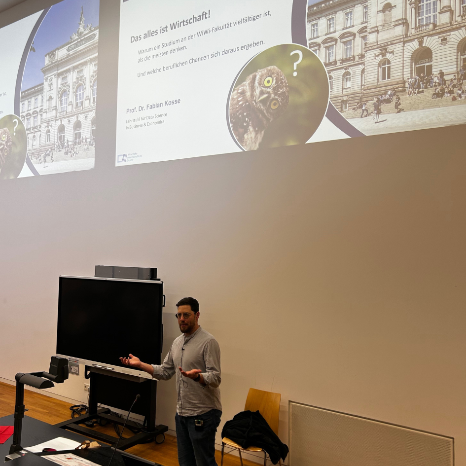 Neben den Informationsständen bot der Studien-Info-Tag auch ein breit gefächertes Vortragsprogramm. In den einzelnen Vorträgen wurden die verschiedenen Studiengänge der JMU detailliert vorgestellt – von Biologie über Germanistik bis hin zu Wirtschaftswissenschaft. Einer hohen Nachfrage erfreuten sich auch die beiden Vorträge der Wirtschaftswissenschaftlichen Fakultät. Prof. Dr. Fabian Kosse informierte über den Studiengang Wirtschaftswissenschaft, während Prof. Dr. Axel Winkelmann die Studiengänge Wirtschaftsinformatik und Digital Business & Data Science vorstellte. Die Teilnehmerinnen und Teilnehmer erhielten wertvolle Informationen zu Studieninhalten, Karriereperspektiven und den Anforderungen der jeweiligen Studiengänge.