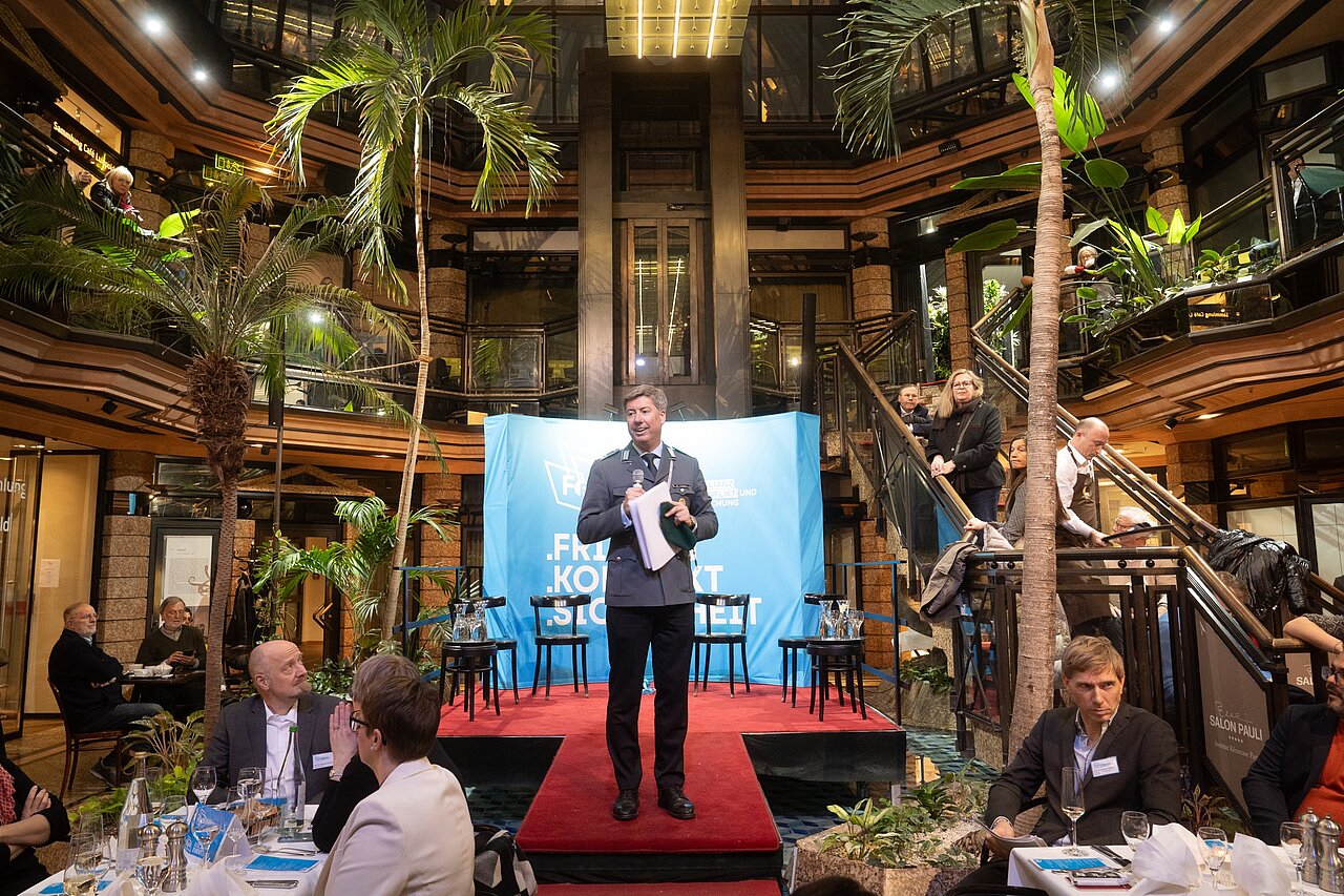 Besonders erfreulich war die Teilnahme der Präsidentinnen und Präsidenten der bayerischen Mitgliedsuniversitäten, darunter auch Prof. Dr. Paul Pauli, Präsident der Julius-Maximilians-Universität Würzburg. Diese hochrangige Präsenz unterstreicht die enge Verzahnung zwischen Wissenschaft, Politik und sicherheitspolitischer Praxis.