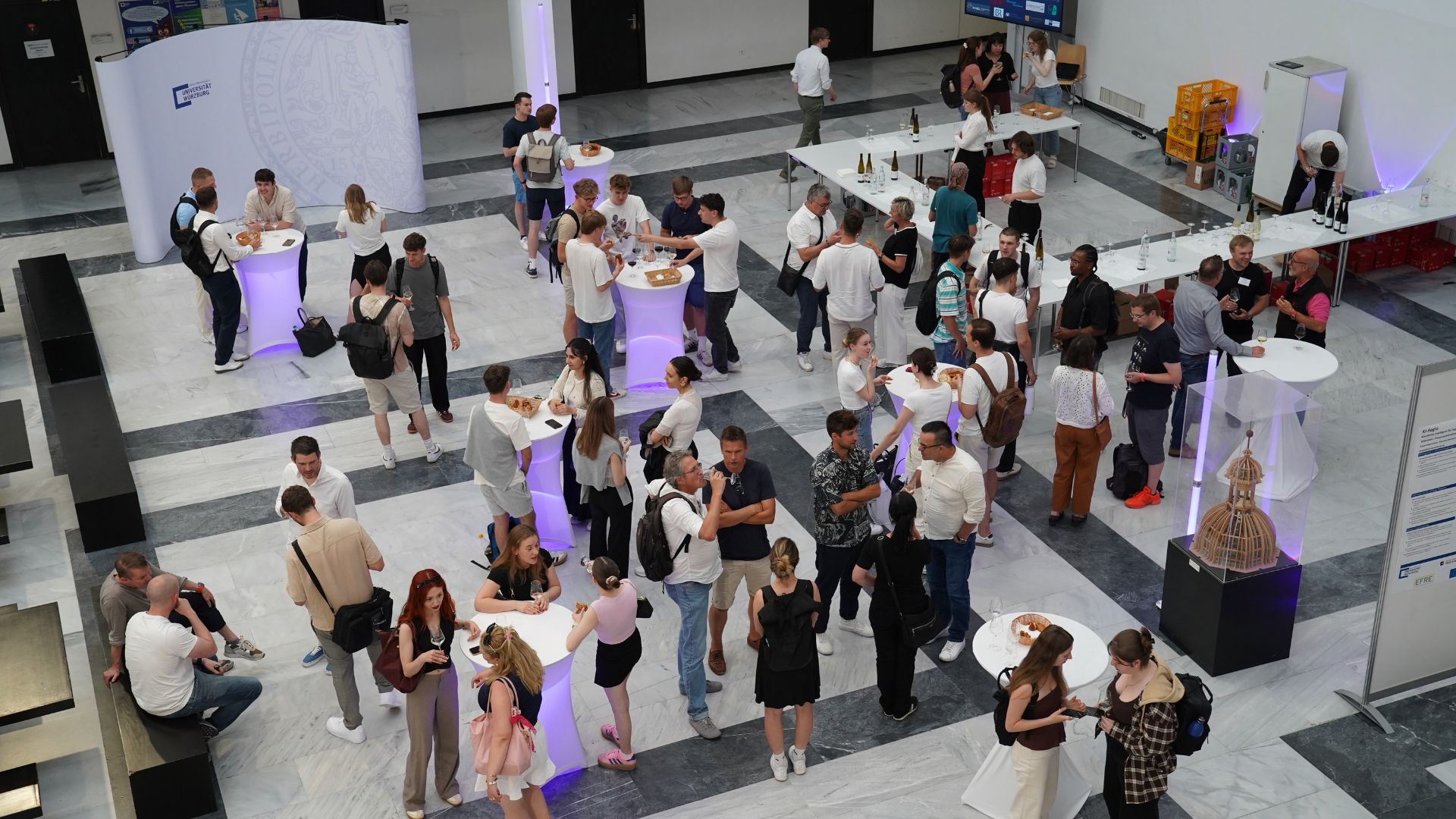 Im Anschluss lud ein gemeinsamer Weinempfang im Lichthof zum weiteren Austausch in entspannter Atmosphäre ein. Dort konnten die Gäste außerdem eine Posterausstellung zu allen Teilprojekten erkunden und weitere Einzelheiten über deren Inhalte und Schwerpunkte nachlesen.