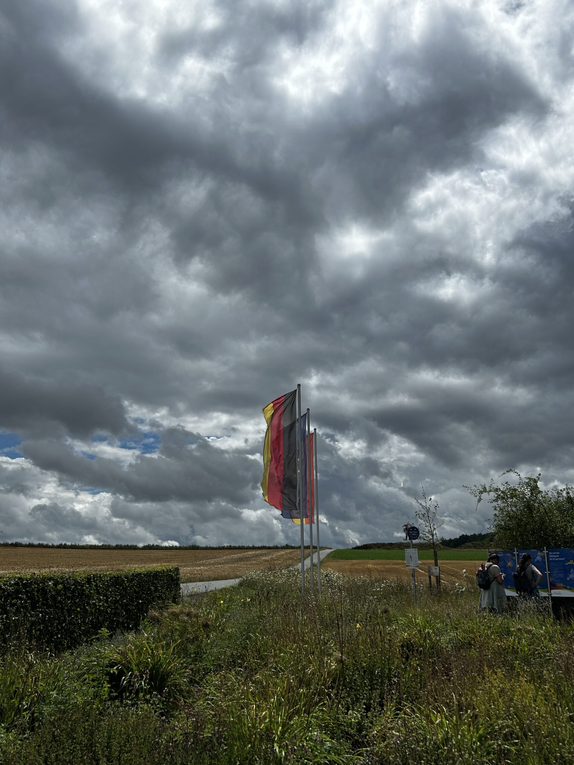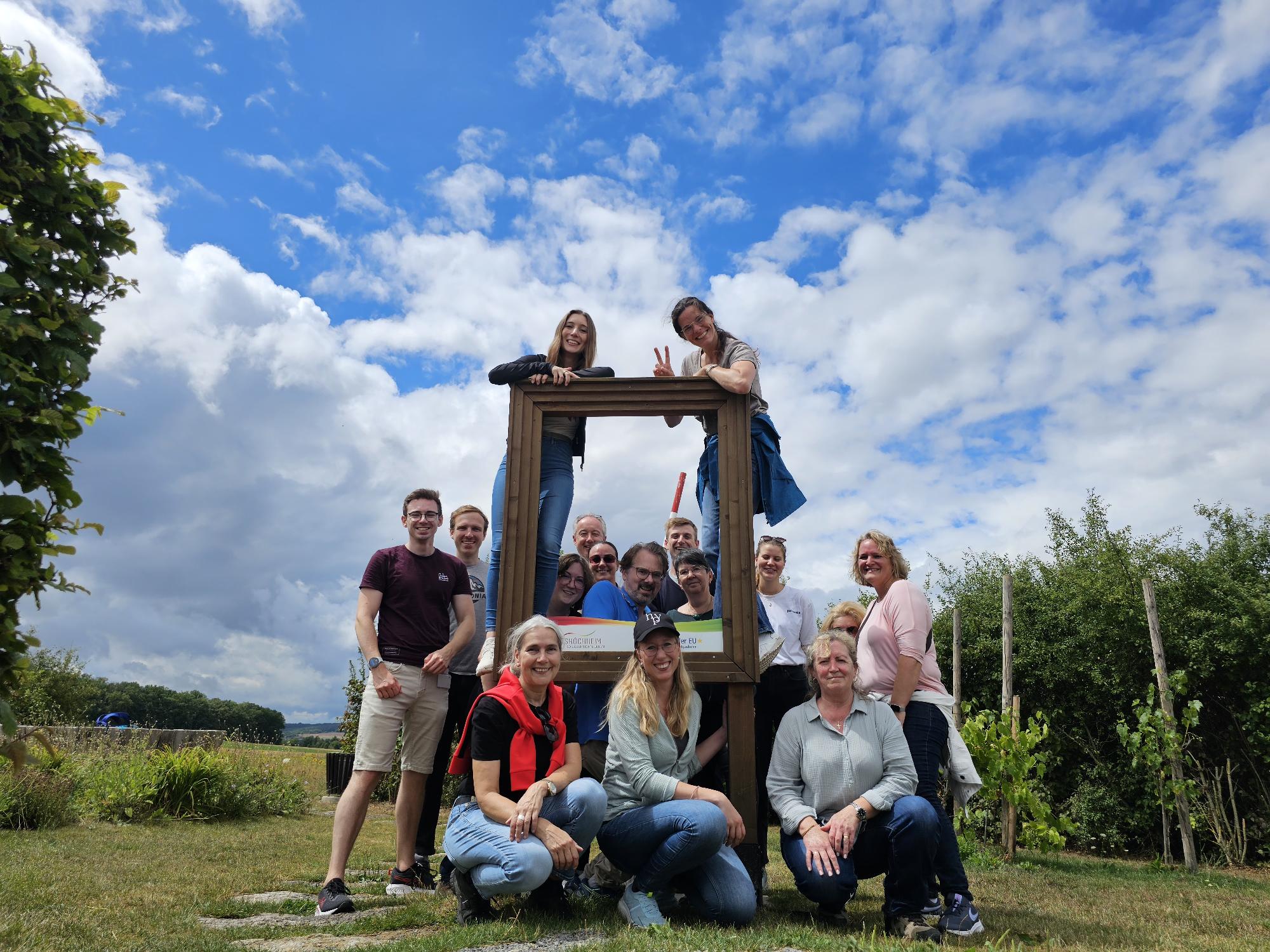 In Veitshöchheim angekommen, ging es zu Fuß weiter: Eine kleine Wanderung führte die Teilnehmenden durch die schöne Natur bis zum Mittelpunkt der Europäischen Union – ein passendes Ziel für eine international ausgerichtete Fakultät. Nach dem obligatorischen Gruppenfoto ging es dann wieder zurück nach Veitshöchheim, um für eine anschließende Stärkung einzukehren. Mit gutem fränkischem Essen im Bauch machten sich die Mitglieder der Fakultät am Nachmittag wieder mit dem Schiff auf den Heimweg nach Würzburg.