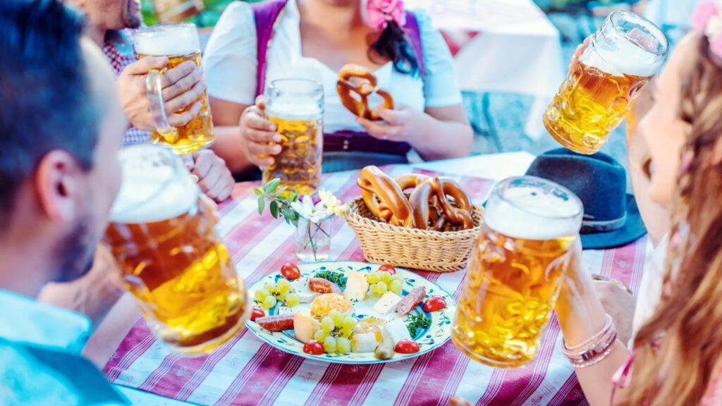 Bier, Brezeln – und Obazda: In den Biergärten der Region sind das beliebte Zutaten für gesellige Stunden. Im Raum Würzburg wird nun getestet, wie Künstliche Intelligenz helfen kann, dass in den Gaststätten zum Beispiel Obazda auch in Spitzenzeiten immer in ausreichenden Mengen vorhanden ist. (Bild: Getty Images)